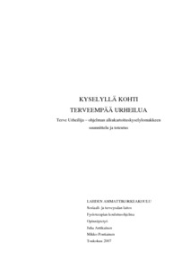 Vuonna 2003 Suomessa rekisteröitiin yli 800 000 koti- ja vapaa-ajan tapaturmaa. Näistä liikuntatapaturmien osuus oli yli 330 000 ja tämä määrä kasvaa vuosi vuodelta. Sosiaali- ja terveysministeriö ovat asettaneet tavoitteeksi näiden tapaturmien vähentämisen ja konkreettisena tavoitteena on saada Suomesta Euroopan turvallisin maa vuoteen 2015 mennessä. Terve Urheilija -ohjelma on osa Liikuntavammojen Valtakunnallista Ehkäisyohjelmaa (LiVE), jota koordinoi UKK-instituutti. Ohjelmaa kehitetään ja toteutetaan yhdessä Valmentajien ja ohjaajien koulutuksen kehittämishankkeen (VOK) kanssa. Liikuntavammojen ehkäisyohjelma toimii Kansanterveyslaitoksen (KTL) Koti- ja vapaa-ajantapaturmien ehkäisyn yksikön rinnalla. Terve Urheilija -ohjelma tähtää terveempään urheilijaan harjoittelun tukitoimia kehittämällä. Ohjelma koostuu alkukartoituksesta, analysoinnista, aktiivisesta toiminnasta eli tukitoimien parantamisesta ohjaajia ja valmentajia kouluttamalla sekä arvioinnista. Tässä opinnäytetyössä on kehitetty Terve Urheilija -ohjelman alkukartoitus. Sen menetelmäksi on valittu kyselytutkimus. Työssä käsitellään kyseisen kyselyn tekeminen tuotteistamisprosessina. Lopputuotoksena ovat kyselypohjat, joita voidaan hyödyntää Terve Urheilija -ohjelmassa ja varsinkin sen analysointi vaiheessa. Kyselyt on kehitetty käyttämällä hyväksi ohjelman osa-alueista kerättyä teoriapohjaa. Työssä kerrotaan tuotteistamisen ja kyselyn eli mittarin kehittämisen eri vaiheet. Kyselyn toimivuus on testattu pilottilajeilla, jotka ovat Suomen Voimisteluliitto Svoli:n alaiset naisten telinevoimistelu ja joukkuevoimistelu maajoukkueille. Työssä on pohdittu mittarin toimivuutta ja sen soveltuvuutta Terve Urheilija -ohjelman alkukartoitukseksi. Pilottitutkimukset on analysoitu kyselyiden toimivuuden toteamisen vaatimalla tasolla. Lopputuotteena syntyneet Urheilija- ja Valmentajakyselyt toimivat Terve Urheilija -ohjelman alkukartoitus - osioina ja ne on luovutettu ohjelman käytettäväksi.