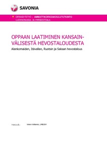 Hevostalous on kansainvälistä ja lähes jokaisesta maailman maasta löytyy omanlaisensa hevoskulttuuri ja –ala. Tässä toiminnallisessa opinnäytetyössä on valmisteltu materiaali kansainvälisestä hevostaloudesta. Sitä voidaan käyttää opetusmateriaalina hevosalan oppilaitoksissa tai sellaisenaan luettavaksi.