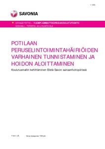 Potilaan peruselintoimintahäiriöiden varhainen tunnistaminen ja hoidon aloittaminen : Koulutusmallin kehittäminen Etelä-Savon sairaanhoitopiirissä