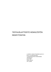 Tämä opinnäytetyö käsittelee rekrytointia ja henkilöstön testausta. Opinnäytetyö tehtiin syksyn 2006 ja kevään 2007 välisenä aikana. Tarkoituksena oli kehittää tehokkaita välineitä sopivien työntekijöiden rekrytointiin Kemppi Oy:lle, joka on suurin hitsauskoneiden valmistaja Suomessa. On välttämätöntä rekrytoida kyvykkäimmät työntekijät, jotta korkeateollinen yritys pystyy säilyttämään kilpailullisen vahvuuden. Aluksi tietoa rekrytointiprosessista kerättiin kirjallisuudesta. Tämän tiedon pohjalta oli mahdollista luoda apuvälineitä rekrytointiprosessiin. Päätarkoituksena oli kehittää oikeaan hitsauskoneeseen perustuva erityinen testauslaite henkilöstön testausta varten. Rekrytointiprosessin tueksi tehtiin myös kysymyssarja sekä multimediaesitys DVD-muodossa. Kemppi Oy tarjosi työkalut ja työtilat projektin tarpeisiin. Adobe Photoshop CS2 -ohjelmaa käytettiin kuvankäsittelyyn. Encore DVD 1.5 -ohjelmaa käytettiin DVD:n koostamiseen. Premiere Pro 1.5 -ohjelmaa käytettiin editoimiseen sekä raa'an videomateriaalin ja medialeikkeiden leikkaamiseen. Multimediaesitys esittelee itse testauslaitteen ja työtehtävien esimerkkisuorituksen, joka tehdään testauksen aikana. Kysymykset ilmaisevat potentiaalisen hakijan tietämystä sähköstä. Tehtävä testaussuorite osoittaa, kuinka tehokas ja pystyvä hakija on kokoonpano-osaston tarpeisiin.