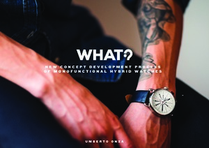 Wath? Watch on tehnyt yhteistyötä konseptin kehittämiseksi kansainvälisesti tunnettujen suunittelu toimistojen sekä yritysten kanssa kuten PARTY:n, TBWA;n sekä Ab-Art Watch:n kanssa. Kellot ovat suuniteltu tarkan Sveitsiläisen kellonvalmistusperinteen ja tuntemuksen mukaan ja niiden materiaalit ovat tarkoin valikoituja. Kellojen valmistus ja loppukokoonpanot tehdään Kiinassa, Shenzhenin maakunnassa, jossa tuotteiden valmistus on tuttua ja ammattitaitoista. This thesis explains a new product and concept development process from the point of view of a junior product designer Umberto Onza who works for TBWA\Helsinki. From the first day he started his career in TBWA, he started to work for a Swiss lifestyle watch brand called What? .What? founded in Spring 201,3 who launched its first collection of watches in Brooklyn, New York for the global market in Autumn 2015. The collection received international exposure from various online publications and lifestyle magazines world wide.