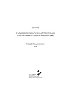Opinnäytetyöni tarkoituksena oli tuottaa kirjallinen ohjevihko raskausdiabeteksesta. Ohjevihon tavoitteina on kehittää raskausdiabeetikoiden saamaa ohjausta ja kannustaa heitä sitoutumaan omahoitoonsa. Ohjevihko on tarkoitettu odottaville äideille, joilla on diagnosoitu raskausdiabetes.