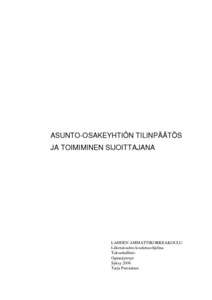 Tämä opinnäytetyö käsittelee asunto-osakeyhtiön tilinpäätöstä ja sijoittajana toimimista. Työssä käytetyllä asunto-osakeyhtiöllä on mahdollisuuksia sijoittaa varojaan, ja taloyhtiön mahdollisia sijoituskohteita käsittelen toiseksi viimeisessä luvussa. Teoriaosuudessa selvitetään, miten asunto-osakeyhtiön tilinpäätös syntyy ja mitä tulee huomioida tehdessä tilinpäätöstä. Lyhyesti selvitetään asunto-osakeyhtiön hallintoa sekä isännöitsijän roolia asunto-osakeyhtiön toiminnassa. Isännöitsijä toimii asunto-osakeyhtiön toimitusjohtajana ja huolehtii juoksevista asioista. Hallitus valitsee isännöitsijän ja antaa isännöitsijälle ohjeita, miten toimia. Isännöitsijä tekee asunto-osakeyhtiön tilinpäätöksen sekä seuraavalle tilikaudelle talousarvion. Asunto-osakeyhtiön toiminta eroaa tavallisesta yrityksestä siinä, että asunto-osakeyhtiön ei ole tarkoitus tuottaa voittoa. Asunto-osakeyhtiön tilinpäätöksen tekemiseen vaikuttavat kirjanpitoasetus sekä kirjanpitolaki. Kirjanpitoasetuksesta löytyy oma tuloslaskelmakaava asunto-osakeyhtiölle. Asunto-osakeyhtiö voi käyttää kiinteistön hallinnan tasekaavaa, jos ei halua käyttää kirjanpitoasetuksessa annettua perustasekaavaa. Asunto-osakeyhtiön toiminnan kannalta perustasekaava ei sinällään sovellu asunto-osakeyhtiön toimintaan. Tilinpäätökseen on sisällytettävä myös toimintakertomus sekä vastikerahoituslaskelma, jos vastikkeita kerätään eri tarkoituksiin. Asunto-osakeyhtiö voi toimia sijoittajana, mikäli hallitus ja osakkeenomistajat suostuvat siihen. Isännöitsijän olisi hyvä olla ajan tasalla sijoittamisesta ja ehdottaa mahdollisuuksista taloyhtiölle. Asunto-osakeyhtiö voi sijoittaa sekä osakkeisiin että erilaisiin rahastoihin. Lyhyenkoron rahastoilla asunto-osakeyhtiö voi parantaa kassanhallintaansa sekä maksuvalmiuttaan. Myös pidempiaikainen säästäminen voi olla mahdollista asunto-osakeyhtiöllä.