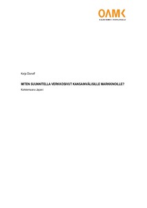 Tutkielmani aiheena on selvittää, miten kulttuurit vaikuttavat kansainvälisessä ja japanilaisessa verkkosivusuunnittelussa ja mitä asioita suunnittelijan tulisi ottaa huomioon, jotta vierasmaalaiselle kohdeyleisölle tehdyt sivut välittyisivät kulttuurille sopivana kokonaisuutena. Japanilaiset verkkosivut ovat ulkonäöltään ja kieleltään hyvin erilaiset verrattuna suomalaisiin verkkosivuihin ja haluan selvittää, mistä nämä erot johtuvat. Tutkielmassani pohdin japanilaisia verkkosivuja Geert Hofsteden kulttuurimallien kautta. Kerron myös verkkosivujen perusteista ja erilaisten kulttuurien tunnuspiirteistä.