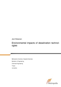 Tämän opinnäytetyön tarkoituksena oli havainnollistaa, kuinka suolanpoistomenetelmät toimivat merivedestä juomakelpoisen veden valmistuksessa ja kuinka kyseiset menetelmät vaikuttavat ympäristöön. Lisäksi työssä käsiteltiin tietoisuuden lisäämistä sosiaalisen median avulla.
