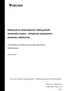 Kokemuksia tiedonsaannin riittävyydestä omahoidon tueksi – Uniapneaa sairastavien potilaiden näkökulma : Kvantitatiivinen tutkimus terveyden edistämisen näkökulmasta