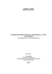 Tämän tutkimuksen aiheena oli työssäoppimisen vaikutus oppimiseen ja työllistymiseen ja se tehtiin Ammattiopisto Lappian tekniikan alan aikuiskoulutukselle. Tutkimus rajattiin koskemaan syksyllä 2015 alkanutta mekaanisen kunnossapi-don koulutusta. Opinnäytetyön tutkimuskysymyksinä olivat mekaanisen kunnossapitokoulutuksen kautta tapahtuva oppiminen, työssäoppimisjakson vaikutus ammatilliseen kehittymiseen ja työssäoppimisjakson mahdolliset työllistymisvaikutukset.