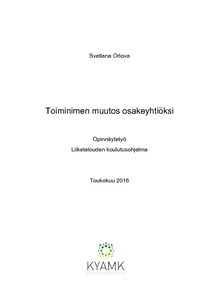 Työn alussa on teoriaosuus, jossa selviää, miten osakeyhtiö ja toiminimi eroavat toisistaan muun muassa vastuun, hallinnon ja verotuksen näkökulmasta ja mitä kannattaa huomioida yrityksen muodonmuutoksen aikana. Lopuksi empiirisessä osassa on toteutettu verolaskelmat viimeisen, vuoden 2015 tilinpäätöksen pohjalta yksityisenä elinkeinoharjoittajana ja osakeyhtiönä, sekä vertailtu verojen määrää eri vaihtoehdoissa.