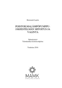 Poistoilmalämpöpumppujärjestelmän mitoitus ja valinta