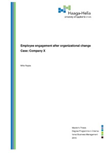 The main focus of this study is on employee engagement in an environment that has gone through organizational change. The aim of this study is to investigate how employee engagement is related to organizational change, and the way it was managed, and which factors facilitate employee engagement according to the employees of the case company.