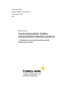 Tässä opinnäytetyössä tarkastellaan asukkaiden näkemyksiä Turun kaupungin kehittämisestä ja Turun valmisteilla olevasta uudesta Yleiskaavasta 2029. Tutkimuksen avulla on yleiskaavatyön luonnosvaiheessa selvitetty turkulaisten ajatuksia asumisesta, palveluista, viher- ja virkistysalueista sekä liikkumisesta. Asukkaita osallistamalla saatuja tuloksia käsitellään työssä sosiaalisten vaikutusten näkökulmasta. Opinnäytetyön toimeksiantajana on Turun kaupungin ympäristötoimialan kaupunkisuunnittelun tulosalue. Työn tarkoituksena on tuottaa toimeksiantajalle tietoa turkulaisten mielipiteistä yleiskaavaluonnoksen laadintaan sekä täydentää Yleiskaavan 2029 sosiaalisten vaikutusten arviointityötä.