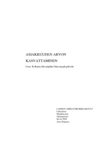 Tämä opinnäytetyö käsittelee asiakkuudenhallintaa, asiakkuuden vaiheita ja asiakkaalle muodostuvaa lisäarvoa. Työ käsittää myös K-Rauta Järvenpäälle tehtävän Oma-myyjä palvelun ohjeistuksen. Teoria osuudessa käsitellään asiakkuudenhallintaan liittyviä käsitteitä sekä asiakkuudenhallinnasta asiakkaalle syntyvää lisäarvoa. Jotta asiakkaalle voidaan luoda lisäarvoa, tulee yrityksen tuntea asiakkuuden elinkaaren vaiheet ja osata johtaa asiakasta oikein eri elinkaaren vaiheissa. Asiakkaan lisäarvon muodostumisella tarkoitetaan yrityksen käytössä olevan asiakastiedon hyödyntämistä. Asiakastiedolla luodaan lisäarvoa asiakkaalle, joka sitouttaa asiakkaan yritykseen. Opinnäytetyössä käsitellään lisäarvon muodostumista niin yritysten välisessä kuin kuluttajakaupankäynnissäkin. Erityispaino tässä työssä on kuluttaja-asiakkaan lisäarvon muodostumisessa. Opinnäytetyön empiriaosuus koostuu toimeksiantajayritys K-Rauta Järvenpäälle tehtävästä Oma-myyjä palvelu ohjeistuksesta. Oma-myyjä palvelun tarkoitus on olla kokonaisvaltainen palvelu rakentaja-asiakkaalle, joka kestää koko asiakkaan projektin ajan. Ohjeistuksen avulla yritys saa työkalun, jolla se pystyy palvelemaan asiakkaitaan paremmin ja tarjoamaan heille uudenlaisen palvelukokonaisuuden, josta asiakas saa lisäarvoa. Palvelu sitouttaa asiakkaita yritykseen, mikä vastaavasti kasvattaa asiakasosuutta ja näin tuo yritykselle taloudellista hyötyä. Ohjeistuksen toteuttamisen pohjalta voidaan todeta, että Oma-myyjä palvelulla KRauta Järvenpää voi tarjota asiakkailleen uudenlaista lisäarvoa, jota ei ole aikaisemmin tarjottu. Palvelulla asiakkaita pystytään sitouttamaan paremmin ja rakentamaan pitkäkestoisia asiakassuhteita.