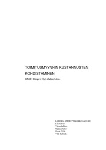 Tämän opinnäytetyön tavoitteena on toimitusmyynnin kustannusten analysointi ja kohdistaminen Kespro Lahden tukussa sekä kohdistettujen kustannusten rakenteen ja käyttäytymisen tutkiminen. Teoreettisessa osiossa käsitellään laskentatoimen sekä kustannuslaskennan tietojärjestelmiä. Näiden lisäksi tarkastellaan lyhyesti SAP R/3 -tietojärjestelmää. Sisäinen laskenta tarjoaa tärkeitä työkaluja yrityksen johdon päätöksen tekoon. Teoria sisäisestä laskennasta keskittyy suurelta osin valmistusyrityksiin. Siinä missä valmistusyritys keskittyy laskemaan kustannuksia valmistettavalle tuotteelle hinnoittelua varten, on markkinointiyrityksen laskentatoimen pääpainopiste tuloksen laskemisessa eri toiminnoille ja osastoille. Kustannuslaskenta on tärkeä osa sisäistä laskentaa. Kustannusten arvostaminen ja kohdistaminen sekä laskentakohteen määrittely oikein toteutettuna ovat ratkaisevassa osassa sisäisen laskennan onnistumisessa. Kustannusten jaottelun teoria antaa viitekehyksen, jonka pohjalta kustannuksia voidaan lähteä analysoimaan ja rakentamaan toimivaa raportointia mallia. Tutkimuksen empiirinen osuus koostuu Kespro Lahden tukulle tehdystä kvalitatiivisesta tutkimuksesta joka kohdistaa Lahden yksikön kustannuksia toimitusmyynnin prosessiin ajalla 1.9.2006-30.9.2007. Lisäksi tarkastellaan toimitusmyynnin kustannusrakennetta kokonaisuutena ja seurataan kustannusten käyttäytymistä tutkimusajanjaksolla. Tutkimuksen tulosten perusteella voidaan todeta, että toimitusmyynnin henkilöstöja kuljetuskustannukset muodostavat oleellisimman osan prosessin kustannuksista. Kustannukset olivat suuruudeltaan prosessikaavion mukaisia, ja ne pääsääntöisesti reagoivat myynnin vaihteluihin. Yleiskustannusten merkittävyys näkyi laskettaessa toimitusmyynnin tulosta, jonka määräsivät yleiskustannusten vaihtelut.