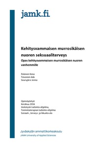 Opinnäytetyön tavoitteena oli tehdä opas kehitysvammaisen murrosikäisen nuoren seksuaaliterveydestä kehitysvammaisten nuorten vanhemmille. Opinnäytetyön tarkoituksena oli lisätä vanhempien ymmärrystä ja tietoutta murrosikäisen kehitysvammaisen nuoren seksuaaliterveydestä. Tarkoituksena oli myös, että kehitysvammaisten murrosikäisten nuorten tietämys seksuaaliterveydestä lisääntyisi vanhempien kautta.