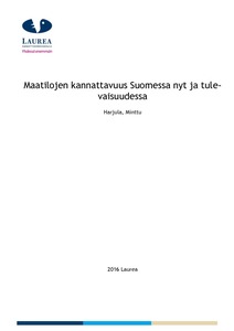 Tämän opinnäytetyön tavoite oli selvittää, kuinka suomalaisilla maatiloilla toiminnan kannattavuus on muuttunut viimeisen viiden vuoden aikana ja mitkä tekijät kannattavuuden muutokseen ovat vaikuttaneet. Lisäksi selvitettiin, kuinka maatiloilla nähdään toiminnan kannattavuus tulevaisuudes-sa ja mitkä tekijät vaikuttavat näkemykseen. Kyselytutkimuksen avulla kerättiin ajankohtaista tietoa ja näkemyksiä maanviljelijöiltä, joilla on omakohtaisen kokemuksen myötä vahva näkemys maatilojen kannattavuudesta. Poliittiset päättäjät, viranomaiset ja maatalousalan tutkijat voivat hyödyntää opinnäytetyön uutta ja ajankohtaista tietoa muodostaessaan näkemyksiään ja suunnitel-lessaan toimenpidesuosituksia ja tutkimuksia, jotka koskevat maatalouden harjoittajia ja yleisesti Suomen maataloutta.