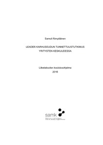 Tutkimus oli kvantitatiivinen tutkimus, joka suoritettiin lomakehaastattelussa. Haastatteluissa käytettiin Google Docs-muotoista verkkolomaketta. Tutkimus varmensi olettamuksen, ettei Leader Karhuseutu ole erityisen hyvin tunnettu nimi kohdeyleisönsä keskuudessa. Tosin saatiin myös selville että joukossa, joka ei tuntenut Leader Karhuseutua, oli ihmisiä, jotka olisivat kiinnostuneet mahdollisesti hakemaa Leader-tukea tulevaisuudessa. Kuten Leader Karhuseudun yhteyshenkilö arvioi, yritysneuvonta- ja yritystukipalvelut, sekä näiden toimipisteissä jaettavat esitteet, olivat suurin kanava tunnettuuden lisäämiseksi. Kehitysehdotuksena hakukoneoptimointi, brändin vahvistamisen jatkaminen yleisessä tietoudessa, sekä mahdollisten aukkojen paikkaaminen muiden yrityspalveluiden kanssa. Lisäksi ehdotettiin tutkimuksen toistamista tulevaisuudessa kasvun mittaamista varten.