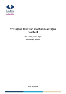 Tässä opinnäytetyössä tutkimme mitä erityistä liittyy maahanmuuttajayrittäjyyteen ja mitä haasteita heillä on perustaessaan ja ylläpitäessään yrityksiään. Tutkimuksen kohderyhmänä olivat maahanmuuttajayrittäjät, joilla on jo valmis ja toimiva yritys Suomessa.