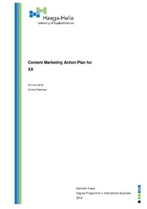 The nature of this bachelor thesis is a product thesis as the objective was to create a content marketing action plan for the case company;XX. The thesis was produced during Spring and Summer 2016 in order to provide efficient guidelines for commissioner to create and conduct successful content marketing strategy in Autumn 2016.