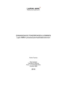 Tässä opinnäytetyössä oli tarkoituksena luoda Lapin ammattikorkeakoulun tiloissa olevaan prosessiautomaatiolaboratorioon ennakkohuoltokierros. Työssä keskityttiin täysin ennakkohuoltoon ja käsiteltiin kunnossapidon teoriaa sekä sen osa-alueita. Työ suoritettiin Lapin ammattikorkeakoulun tiloissa Kemissä.