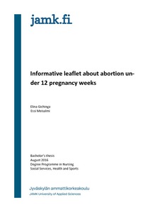 The purpose of this project was to help family planning clinics to share important knowledge about the abortion to English speaking clients by using a leaflet in case of, for example, language barrier. The leaflet will be used as a tool for public health nurses to communicate and educate non-Finnish speaking clients. The product is emphasizing women’s rights to have an abortion and explains the abortion care path in JYTE region. The project was limited to abortions carried out under 12 pregnancy weeks.