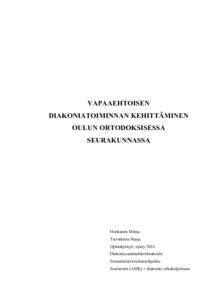 Honkanen, Minna ja Tervahauta Marja. Vapaaehtoisen diakoniatoiminnan kehittäminen Oulun ortodoksisessa seurakunnassa. Diakonia-ammattikorkeakoulu, syksy 2016, 61 sivua, 3 liitettä. Sosiaalialan koulutusohjelma, sosionomi (AMK) + diakonin virkakelpoisuus.