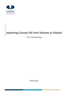 The main goal of this Bachelor’s thesis is to clarify the coconut oil production chain and importing process for it into Finland and some others EU countries. The benefits of coconut oil products for food industry are included, which is popular in Finland because of its healthy advantages. Moreover, the benefit of using coconut oil as beauty products is mentioned as one good point which is now trendy in Asia but not yet popular in Europe.