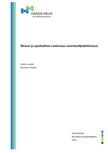 Opinnäytetyö on tehty toimeksiantona Haaga-Helia Ammattikorkeakoulun lehtorille myynnin koulutusohjelman Itsensä johtamisen -kurssin sekä opettajille teetettävän valmennuksen opetusmateriaaliksi. Opinnäytetyö toteutetaan toiminnallisena tuotoksena toimeksiantajalle hänen pyynnöstään. Opinnäytetyön tavoitteena on tuottaa laadukkaat PowerPoint -esitykset stressistä sekä ajanhallinnasta sekä peilata näitä vaativaan asiantuntijatehtävään perehtyen laajasti teoriaan. Opinnäytetyön teoriaosuus koostuu kahdesta eri käsitteestä ja on rajattu työpaikalla sekä koulussa tapahtuvaan vaativaan asiantuntijatehtävyyteen liittyvään stressiin ja ajanhallintaan. Työ toteutetaan kirja- sekä internetlähteiden avulla.