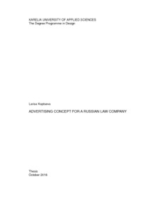 The objective of this thesis is conducting research to create a unique advertising concept, one which would create an image of a reliable and trustworthy company and be productive and effective for a Russian Law company. Working on this thesis was meant to increase understanding and learning how to create advertising that is not only functional but also not irritating to look at and non-disfiguring to the surroundings.