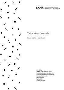 Tässä opinnäytetyössä tutkittiin työprosessin kehittämistä palvelumuotoilun avulla. Toimeksiantajana työssä on Market x, jonka palvelutiskin työntekijän työprosessia lähdettiin kehittämään. Opinnäytetyö haki vastauksia seuraaviin kysymyksiin: ”Mitä palvelumuotoilun keinoja työprosessin muotoilussa voidaan käyttää?, ”Miten työntekijän työprosessista saadaan helpompi?” ja ”Miten palveluprosessista saadaan tasalaatuinen?”