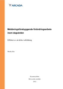Syftet med detta examensarbete är att få reda på hur pedagoger på daghem har upplevt processen av utbildning och resultaten kopplat till deras arbete efter att de deltagit i mobbningsförebyggande utbildning. Jag har valt att fokusera på ifall mobbningsföre-byggande utbildning anordnad av Folkhälsan har påverkat pedagogers attityder och arbetssätt eftersom de flesta som deltagit i mobbningsförebyggande utbildning och ar-betar för Helsingfors stads svenska dagvård har utbildats just av dem. I arbetet sökte jag svar på denna frågeställning genom litteratur och genom empirisk undersökning, som datainsamlingsmetod använde jag enkät. Enkäten besvarades av nio av nitton re-spondenter och dessa analyserades med hjälp av unvariabel och bivariable metod. Den teoretiska referensramen utgjordes av teori om förändringsarbete både för grupper och för individen samt delaktighet och inklusion som ett socialpedagogiskt perspektiv på mobbning. Respondenterna bestod av daghemspersonal med varierande arbetserfaren-het som har deltagit i mobbningsförebyggande utbildning. Resultatet av arbetet var i enighet med tidigare forskning och påvisade för sin del att mobbningsförebyggande utbildning av daghemspersonal gynnar både barn och personal samt förminskar mobb-ning på daghemsenheterna. Examensarbetet är ett projekterat arbete för Helsingfors satds utbildningsverk, linjen för svensk dagvård. The aim of this thesis is to find out how teachers in kindergartens have experienced process of training and the results related to their work after they participated in bully-ing prevention training. I have chosen to focus on whether bullying prevention educa-tion provided by Folkhälsan has affected teachers' attitudes and practices as most of the pedagogical staff who participated in bullying prevention training and work for the City of Helsinki's Swedish day care have participated in education provided by that organiasation. In the work I sought answers to this question through both literature and through empirical study, as the data collection method, I used the survey. The survey was answered by nine of nineteen respondents and analyzed by unvariable and bivari-able method. The theoretical framework consisted of theory of change both for groups and for individuals as well as participation and inclusion as a social pedagogical per-spective on bullying. Respondents consisted of daycare staff with varied work experi-ence who have taken part in bullying prevention training. The results of the work were in agreement with previous research and demonstrated for its part that daycare staff benefit from training in bullying prevention and that bullying in the daycare units de-crease. The thesis is a planned work for the Helsinki Education Department, in the line of Swedish daycare.