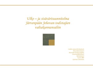 Tämä opinnäytetyö käsittelee ulko- ja sisävärisuunnitelman toteutusta Järvenpään Jehovan todistajien valtakunnansaliin. Opinnäytetyön alkupuolella selvitetään työn osapuolet ja luodaan katsaus valtakunnansaleihin Suomessa. Lisäksi perehdytään valtakunnansaleissa tapahtuvaan toimintaan. Tämän jälkeen paneudutaan tarkemmin työn varsinaiseen kohteeseen eli Järvenpään Jehovan todistajien valtakunnansaliin, sen alkuperäiseen kuntoon sekä sitä koskeviin muutossuunnitelmiin. Työn keskivaiheilla käsitellään värinvalintaan vaikuttavia tekijöitä, kuten valaistusta, värin vaikutusta tilaan sekä tunnelmaan. Lisäksi esitellään väriharmoniat ja kontrastin merkitystä värisuunnittelussa. Tekijän tavoitteena onkin käyttää näitä teoriassa opittuja tietoja värinvalinnassa ja suunnitelmien tekemisessä ja luoda näin ollen oikeanlainen tunnelma tilaan. Itse prosessissa aluksi esitellään luonnoksia ja arvioidaan niitä. Ulkovärisuunnitelmaluonnoksista valikoituu kaksi jatkoon tarkempaan suunnitteluun ja sisävärisuunnitelmaa lähdetään rakentamaan halutun värimaailman ja tunnelman selkiydyttyä. Ulkovärisuunnitelmaan kuuluvat työssä kaikki rakennuksen ulkopuoliset pinnat, kuten myös sisäpinnat, muutamia vanhoja kalusteita lukuun ottamatta. Sisätiloissa sävyjen ja materiaalivalintojen lisäksi tekijä paneutuu sisäpilareiden suunnitteluun, jossa tavoitteena on luoda tilasta hieman arvokkaampi ja näyttävämpi koristelistoja apuna käyttäen. Tekijä toteuttaa myös oman valaistussuunnitelman tilaan. Lopuksi tekijä arvioi työtään muun muassa hyvin opettavaiseksi ja antoisaksi projektiksi. Tekijä arvostaa paljon sitä käytännön tietoa ja kokemusta, jota hän on kyseisen työn kohdalla saanut. Tekijä oppi muun muassa paljon luonnonvalon sekä keinotekoisen valon vaikutuksesta värinhavaitsemiseen sekä kontrastin merkityksestä värisuunnittelussa.