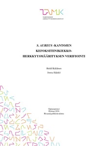 Opinnäytetyön aiheena on S. aureus -bakteerikantojen kefoksitiinikiekkoherkkyysmäärityksen verifiointi. Kefoksitiinikiekkoherkkyysmääritys on EUCAST:n standardien mukainen herkkyysmenetelmä, jota tulisi käyttää S. aureus -kantojen tunnistamisessa. Opinnäytetyön toimeksiantaja on Fimlab Laboratoriot Oy:n kliinisen mikrobiologian vastuualue. Tarkoituksena on vertailla kefoksitiini- ja oksasilliinikiekkomenetelmää, oksasilliini-E-testiä ja kefoksitiinimaljaa (MRSA-malja). Opinnäytetyön tavoitteena on tuottaa tietoa Fimlab Laboratoriot Oy:lle ja selvittää riittääkö pelkkä kefoksitiinikiekkoherkkyysmääritys S. aureus -kantojen diagnostiikassa.