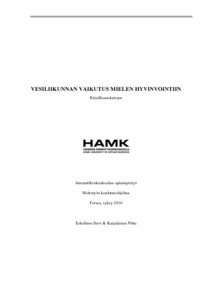 Opinnäytetyö toteutettiin mukaillen systemaattista kirjallisuuskatsausta tuomaan lisää tietoa vesiliikunnan ja ryhmätoiminnan vaikutuksista mielen hyvinvointiin. Työn toimeksiantaja on eräs eteläsuomalainen psykiatrinen avohoitoyksikkö. Yksikön henkilökunta halusi saada erityisesti lisätietoa vesiliikunnan vaikutuksista, koska yksikössä on toiminut kuntoutujien allasryhmä keväästä 2015 alkaen. Tämän opinnäytetyön tarkoituksena oli kerätä tietoa kirjallisuudesta vesiliikunnasta ja ryhmätoiminnasta mielenterveyden edistäjinä. Tavoite oli tuottaa tietoa vesiliikunnan hyödyistä mielenterveystyössä.
