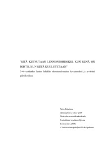 Pajarinen, Netta."SITÄ KUTSUTAAN LENNONJOHDOKSI, KUN SIINÄ ON JOHTO, KUN SIITÄ KUULUTETAAN” 3–6-vuotiaiden lasten leikkiin sitoutuneisuuden havainnointi ja arviointi päiväkodissa. Helsinki, syksy 2016. 98 sivua, 4 liitettä. Diakonia-ammattikorkeakoulu, Sosiaalialan koulutusohjelma, sosionomi (AMK) + lastentarhanopettajan virkakelpoisuus.