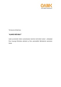 Toteutimme toiminnallisen opinnäytetyön "Alakko nää mua?"-toimintatuokioina Oulun kaupungin Merikotkan päiväkodin kolmelletoista lapselle ja Oulun palvelusäätiön Merikotkantien palvelutalon senioreille leikin, liikunnan, musiikin, kuvataiteen ja yhdessä tekemisen keinoin. Järjestimme neljä yhteistä toimintakertaa lasten ja senioreiden kanssa, jotka toteutimme huhtikuun 2016 aikana. Toimintakertojen lisäksi pidimme molemmille ryhmille erilliset tutustumiskerrat ennen yhteisten toimintojen aloitusta, ja palautehetket toimintakertojen jälkeen. Valitsimme opinnäytetyömme aiheen, koska olemme kiinnostuneita lapsuudesta ja ikääntymisestä. Näemme lapsissa yhteiskunnan tulevaisuutta ja haluamme tukea lasten hyvinvointia. Ikääntyminen elämänvaiheena kiinnostaa meitä, koska se koskettaa meitä kaikkia ja ymmärrämme, että Suomessa ikääntyneiden osuus väestöstä kasvaa.