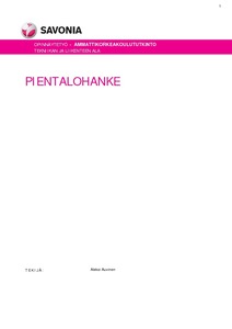 Tämän opinnäytetyön aiheena oli pientalohankeen suunnitteleminen, kustannus- ja määrälaskeminen. Opinnäy-tetyössä käsiteltiin hanketta tarveselvityksen, hankasuunnittelun, rakennesuunnittelun, kustannuslaskennan, ai-kataulun ja hankkeeseen liittyvien tarjouspyyntöjen osalta. Työn tarkoitus oli saada rakennuslupakuvat ja realis-tinen hinta rakennushankkeesta. Opinnäytetyöllä ei ollut erillistä tilaajaa vaan se tehtiin opiskelijan tulevaisuutta varten. Rakennushanke tullaan myös tekemään rakennusteknisiltä töiltään itse.