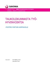 Tämä opinnäytetyö oli kehittämistyö, jonka tarkoituksena oli kehittää taukoliikuntaposteri Tormenta Oy:n alaisiin Hairlekiineihin, joita on koko maassa 37. Tavoitteena oli pyrkiä lisäämään Hairlekiini kampaamojen työntekijöiden työhyvinvointia ja vähentämään työstä aiheutuvia tuki- ja liikuntaelinsairauksia työpaikalla tapahtuvan taukoliikunnan avulla. Alussa perehdyttiin parturi-kampaajan työnkuvaan ja sen rasittavuuteen aiheesta tehtyjen tutkimusten avulla, jonka jälkeen havainnoitiin työasentoja ja niiden kuormittavuutta kahdessa Kuopion toimipisteessä. Työntekijöille teetetyn verkkokyselyn ja kerätyn tiedon avulla kehitettiin posterista kokeiluversio, joka oli viikon ajan viidessä eri toimipisteessä kokeilussa. Kokeiluversiosta saatu palaute huomioitiin lopullisen posterin suunnittelussa. Posterista pidettiin esittelytilaisuus yhdessä Kuopion toimipisteessä ja Tormenta Oy:n intranettiin tehtiin video, jossa liikkeet näytettiin ja suoritustavat selostettiin.