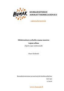 Tämän opinnäytetyön tarkoituksena oli selvittää, mitä digitaalinen pelaaminen ja elektroninen urheilu merkitsevät nuorille sekä elektronisen urheilun soveltuvuutta nuorisotyöhön. Elektroninen urheilu on digitaalisten pelien kilpailullista pelaamista joko kahden yksilön tai joukkueen välisesti. Elektroninen urheilu, joka tunnetaan myös nimillä eSports, e-urheilu ja kilpapelaaminen, on yksi tämän hetken suurimmista ja nopeimmin kasvavista viihdeteollisuuden kulttuuri-ilmiöistä maailmanlaajuisesti. Kymmeniä miljoonia katsojia verkossa keräävä ja isoja stadioneja täyttävä elektroninen urheilu näkyy myös osana kasvatusta niin koulutusohjelmissa kuin vapaa-ajan viettomahdollisuutenakin.