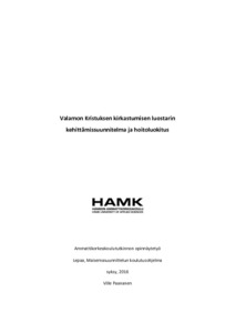Valamon luostarin puisto on ainutlaatuinen viherympäristö. Sillä on myös tärkeä rooli monille ihmisille hengellisenä ympäristönä. Hyvin hoidetut viheralueet korostavat tätä ulottuvuutta. Talkootyö taas on merkittävä osa koko Valamon yhteisöllistä elämää. The essential objective of this thesis was to improve the central green areas of Valamo monastery in order to make them more functional and practical and to create a classification for the maintenance for the whole area. Valamo is located in Heinävesi and it is the only male monastery in Finland. The monastery has a long history but in Heinävesi it has acted since 1940s. The basis of the economy of the monastery is tourism activities. The monastery park has mainly been taken care of by volunteer workers.