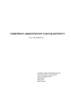 Opinnäytetyö käsittelee arkistoinnin erimuotoja sekä arkistoinnin kehittymistä. Opinnäytetyössä selvitetään, mitä yrityksen tulisi huomioida suunnitellessaan sähköistä arkistointijärjestelmää sekä kartoitetaan Isku Keittiöt Oy:n tarve sähköiseen arkistointijärjestelmään. Arkistointi-osiossa selvitetään, mitä arkistoinnilla käsitetään. Lisäksi osiossa paneudutaan arkistoinnin kehitykseen sekä eri arkistointimuotoihin. Kappale sähköinen arkistointi on työn tärkein osa-alue, siinä selvitetään sähköistä arkistointia yleisesti. Keskitytään dokumenttien säilyttämiseen sekä sähköisen arkistoinnin etuihin ja ongelmallisiin puoliin. Osiossa paneudutaan myös sähköisten dokumenttien jakautumiseen ja elinkaareen sekä mitä tulee huomioida sähköisen arkistoinnin suunnittelussa. Arkistointiin liittyvä tietoturva-osiossa selvitetään sähköisten dokumenttien vaatimaa tietoturvaa yleisesti sekä tiedon turvaluokituksia ja dokumenttien suojeluluokituksia. Lainsäädäntö kappale sisältää laissa määrätyn arkistolain selvityksen lyhyesti. Opinnäytetyön empiirinen osuus toteutettiin Isku Keittiöt Oy:lle kyselytutkimuksen sekä haastatteluiden avulla. Saatekirje ja kyselylomake, lähetettiin sähköpostilla valituille henkilöille, joita oli yhdeksän. Haastatteluiden avulla pyrittiin selvittämään lähemmin, miten hyvin nykyinen arkistointi palvelee tämän hetken tarpeita ja mitä sähköiseltä arkistoinnilta toivotaan. Vastausten pohjalta voidaan päätellä, että Isku Keittiöt Oy:n henkilökunta toivoo muutosta nykyiseen arkistointitapaan. Vastauksista ilmenee, että arkistoitavat dokumentit halutaan sähköiseen järjestelmään jotta tietojen lisääminen ja hakeminen arkistosta olisi helpompaa. Paperidokumenttien tahdotaan poistuvan käytöstä, koska paperiarkistosta dokumenttien etsiminen on työlästä.