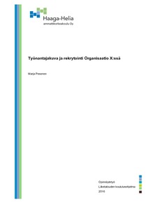 Tämä opinnäytetyö tehtiin Organisaatio X:lle, joka on sekä Suomessa että kansainvälisesti toimiva kansalaisjärjestö. Organisaatio X on osa kansainvälistä kattojärjestöä. Tutkimus käsittelee työnantajamielikuvaa ja sen vaikutusta rekrytointiin. Tutkimuksen kohteena olivat Organisaatio X:n vuoden aikana rekrytoidut työntekijät. Kyselytutkimuksella haluttiin selvittää, minkälaisen työnantajakuvan rekrytointiprosessi antaa hakijan näkökulmasta ja miten työntekijät kokivat prosessin eri vaiheet.