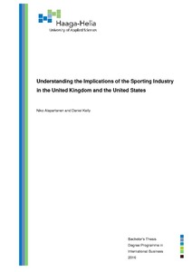 This thesis is researched, constructed and presented as a dual thesis between Daniel Kelly and Niko Alapartanen. The familiarity of the sport’s industry, for both authors, was an important factor in choosing to base the project and research on this industry. Again, both also study financial management as part of the Haaga-Helia International Business degree program, also known as GloBBA. The sporting industry has not been given much thought amongst students in Finland, at an academic point of view, which was a catalyst in researching the topic.