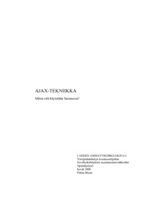 Tässä opinnäytetyössä käsitellään paljon puhuttua ajax-tekniikkaa ja tutkitaan sen levinneisyyttä Suomessa. Lisäksi tarkoituksena on tutkia millä tavoin sitä on Suomessa käytetty. Aluksi selvitetään mitä ajax-tekniikka on ja mitä kaikkea siihen sisältyy. ajaxtekniikkaan kuuluu monia vanhoja web-tekniikoita, joiden toimintaperiaatteet pyritään selvittämään. Tarkoitus ei ole toimia oppikirjana, vaan nopeasti esitellä tekniikat. Seuraavaksi tutustutaan ajaxin toimintaan. Luvussa esitellään miten ajaxtekniikassa käytetään vanhoja web-tekniikoita uudella tavalla hyväksi. Opinnäytetyön empiirisessä osassa pyritään selvittämään kuinka paljon ajaxia suomalaisissa web-palveluissa keskimäärin käytetään ja millä tavoin sitä käytetään. Tutkimuksen ideana ei ollut selvittää kaikkia ajaxia käyttäviä sivustoja, vaan tutkia miten hyvin ajax yleisesti on otettu vastaan.