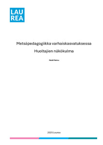 (2025)Tämän opinnäytetyön tarkoituksena on tarkastella huoltajien näkemyksiä metsäpedagogiikasta osana varhaiskasvatusta sekä sen merkitystä lapsen kehityksen ja hyvinvoinnin tukemisessa. Tavoitteena on ymmärtää, miten huoltajat ...Avoin saatavuus / Open access / Öppen tillgång -