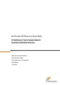 Irrotettavan hammasproteesin käyttäjälle suunnatun huoltopakkauksen tarpeellisuus perustellaan opinnäytetyössä kartoittamalla vastaavan tuotteen saatavuutta Suomessa, sekä tarkastelemalla irrotettavien hammasproteesien kuntoa. Opinnäytetyössä paneudutaan suun sairauksiin sekä niiden yleisyyteen irrotettavan hammasproteesin käyttäjillä. Irrotettavien hammasproteesien nykyiset ja ennustetut tulevat käyttäjämäärät Suomessa tuodaan myös esiin. Tämän lisäksi esitetään alan ammattilaisten näkemyksiä irrotettavan hammasproteesin huoltopakkauksen tarpeellisuudesta Suomessa.