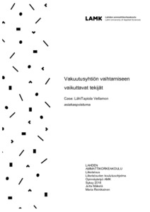Opinnäytetyössä tutkittiin vakuutusyhtiön vaihtamiseen vaikuttavia tekijöitä ja mitä asiakkaat pitävät tärkeänä vakuuttamisessa. Opinnäytetyön toimeksiantajana toimi LähiTapiola Vellamo. Kilpailu on kiristynyt vakuutusalalla ja yritykset kilpailevat palvelun laadulla, lisäpalveluiden avulla sekä ennen kaikkea hinnalla. Digitalisoitumisen myötä vakuutusyhtiön vaihtaminen on tehty asiakkaan kannalta helpoksi. Vakuutusalalla tuotteilla erottuminen kilpailijoista on hankalaa, joten vakuutusyhtiön on käytettävä muita keinoja pysyäkseen mukana kilpailussa.