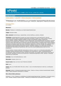 Lapsiperhepalvelut kunnissa ovat monen hallintokunnan ja ammattiryhmän vastuulla. Tutkimusten mukaan palvelut näyttävät lapsiperheille sirpaleisilta, eivätkä aina vastaa perheen tarpeisiin. Moniammatillinen yhteistyö käsitteenä liitetään eri alojen ammattilaisten väliseen yhteistyöhön. Moniammatillisen yhteistyön kehittämisen tarvetta lapsiperheiden palvelujärjestelmässä perustellaan erityisesti ehkäisevän työn näkökulmasta. Yhteistyön puute voi vaikeuttaa perheen tuen tarpeen tunnistamista riittävän varhain ja johtaa sitä kautta lasten ja perheen ongelmien vaikeutumiseen ja kasaantumiseen. Moniammatillisen yhteistyön kuvauksissa nousee esiin kaksi vastakkaista näkökulmaa: yhteistyö nähdään joko mahdollisuutena tai haasteena. Parhaimmillaan asiantuntijuus vahvistuu asiakkaan eduksi, kun eri alojen ammattilaiset ratkaisevat yhdessä käytännössä ilmeneviä ongelmia. Yhteistyön haasteeksi voi koitua tiedon puute toisten ammattilaisten osaamisesta ja työtehtävistä, työn kuormitus, asiantuntijakeskeisyys sekä toiminnan pirstaleisuus.
