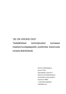 Suzanne Gyllenbögel & Suman Thind ”SE ON VIROKSI ÜKS!” Taidelähtöiset toimintatuokiot luomassa maahanmuuttajalapselle positiivista kokemusta omasta äidinkielestään. Helsinki, Kevät 2017. 57 s., 9 liitettä.