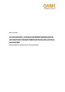 Opinnäytetyön aiheena on valtion oikeusapupiirejä- ja edunvalvontapiirejä koskevan rakenneuudistuksen vaikutukset oikeusaputoimistojen palvelujen laatuun ja saatavuuteen. Tavoitteena on selvittää miten palvelujen laatu ja saatavuus voivat muuttua oikeusaputoimistoissa 1.10.2016 voimaan tulleen rakenneuudistuksen myötä. Opinnäytetyö tuo esille Oulun oikeusaputoimiston henkilökunnan ajatuksia ja odotuksia rakenneuudistukseen liittyen.