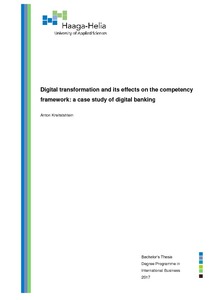 This thesis is a qualitative study on how the digital transformation affects the firm’s competency framework in the banking sector. The aim of the study is to establish what are the differences between the firms of various degrees of digitalisation, and to use that insight to create a competency framework for a digitally transforming firm.
